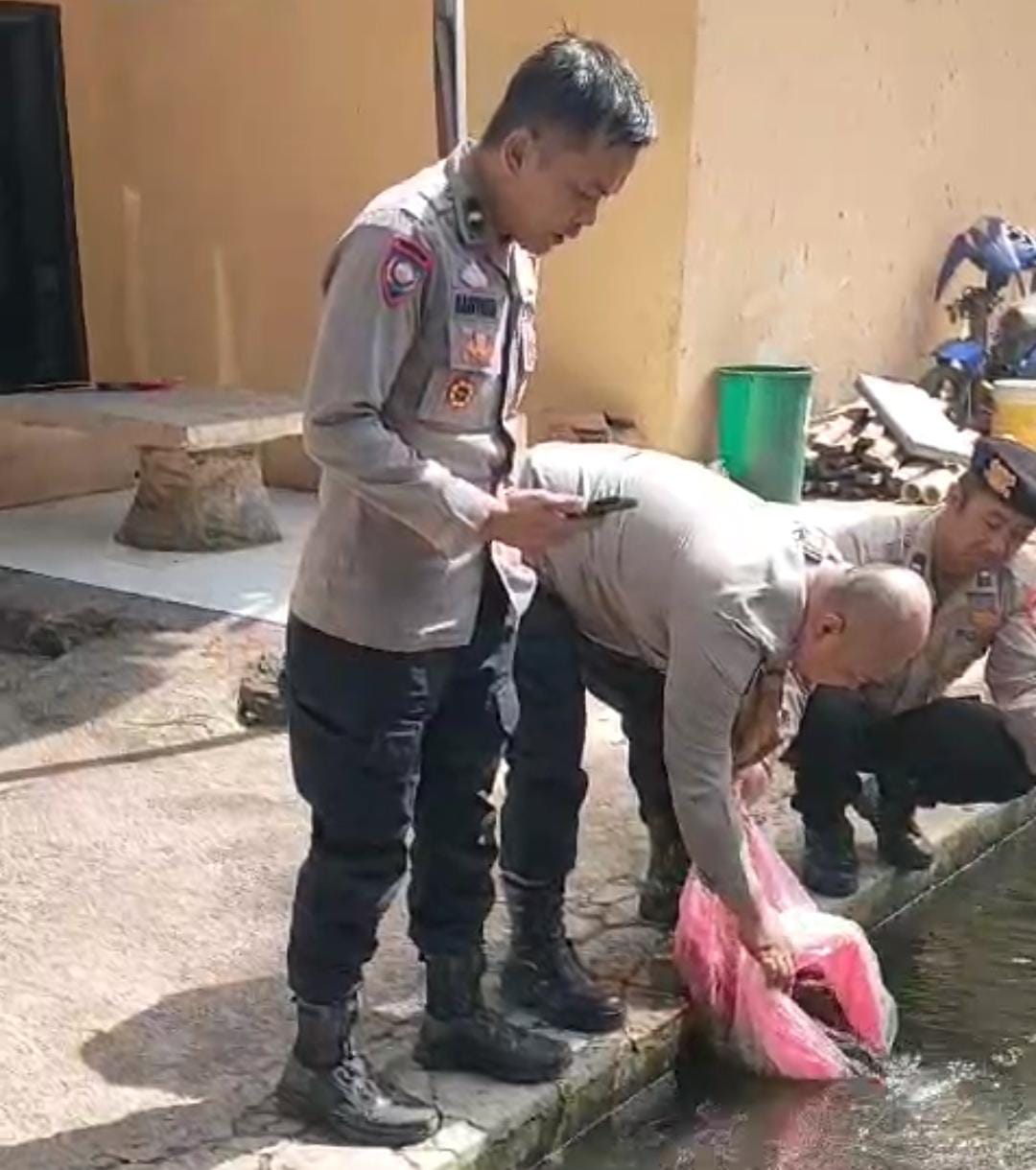 Personil Samapta Dan Bhabinkamtibmas Polsek Cidadap Tanam Ikan Sebagai Bentuk Dukungan Program Asta Cita Presiden RI