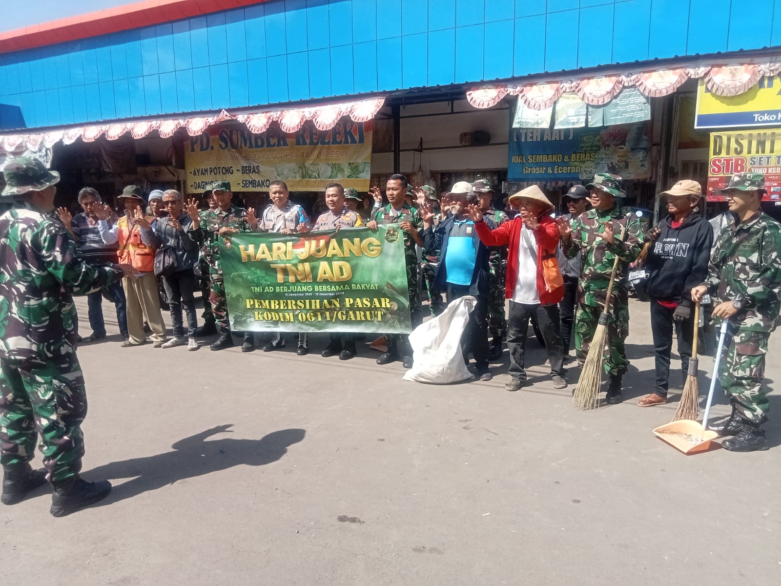 Lensanusantara.my.id – Garut | Dalam semangat memperingati Hari Juang TNI AD yang ke-79, TNI bersama Polri menggelar kegiatan Karya Bakti Sinergitas di Pasar Baraya, Kampung Parigi Kecamatan Banyuresmi Kabupaten Garut.