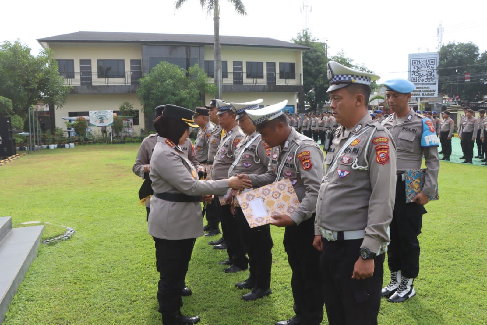 Lensanusantara.my.id | Kapolresta Cirebon, Kombes Pol Sumarni, S.I.K, S.H, M.H, memimpin Apel Jam Pimpinan dan Pemberian Penghargaan Kepada Personil Berprestasi yang bertempat di Lapangan Apel Mapolresta Cirebon, Senin (16/12/2024).