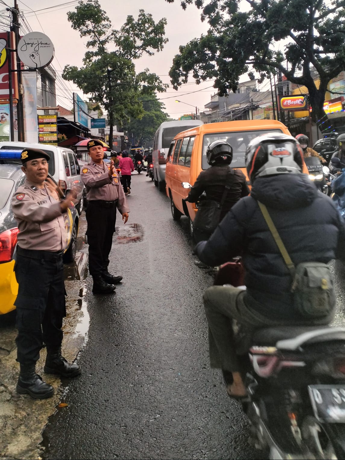 Personil ditempatkan di beberapa titik antisipasi kemacetan arus lalulintas di wilkum polsek Bandung Kulon.