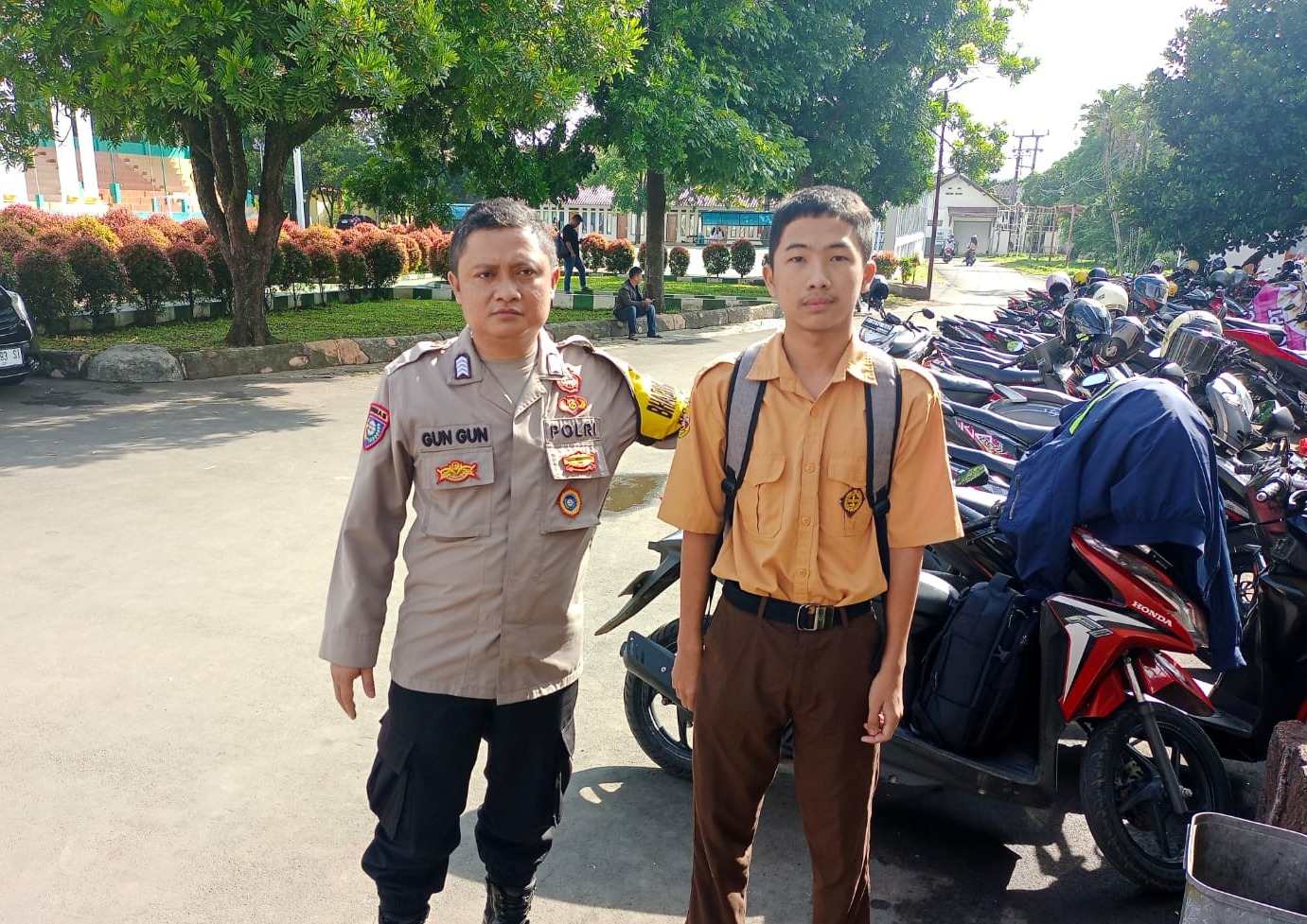 Ketika mengetahui bahwa Ahmad tidak memiliki orang tua dan saudaranya tidak bisa mengambil raportnya, saya merasa terpanggil untuk membantu,” ujar Bripka Gun Gun.