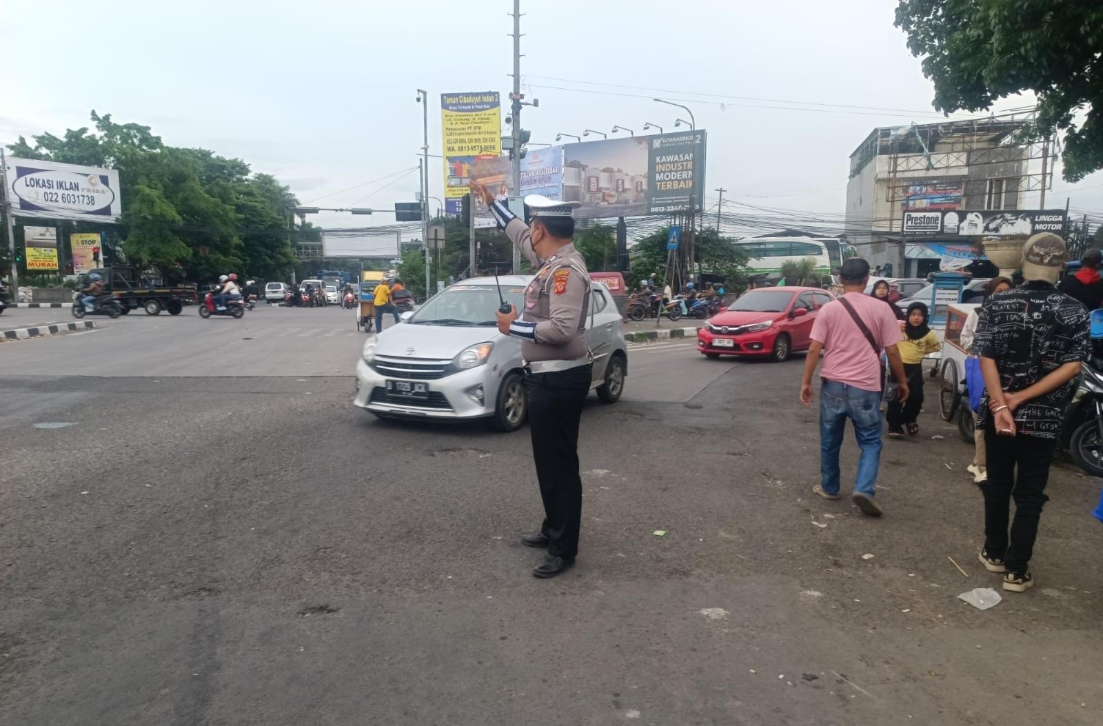 Tempatkan personil di beberapa titik ruas jalan, Unit Lantas Polsek Babakan Ciparay Lakukan Gatur Lalin