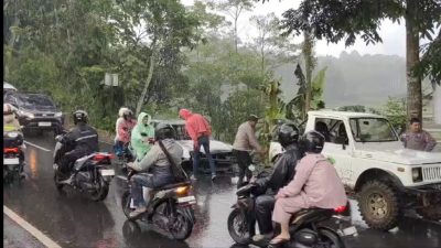 Menerima laporan masyarakat, personil Polsek Cilawu Polres Garut langsung datang ke Tempat Kejadian Perkara (TKP) dan melakukan pengamanan untuk mengantisipasi terjadinya kemacetan arus lalulintas.