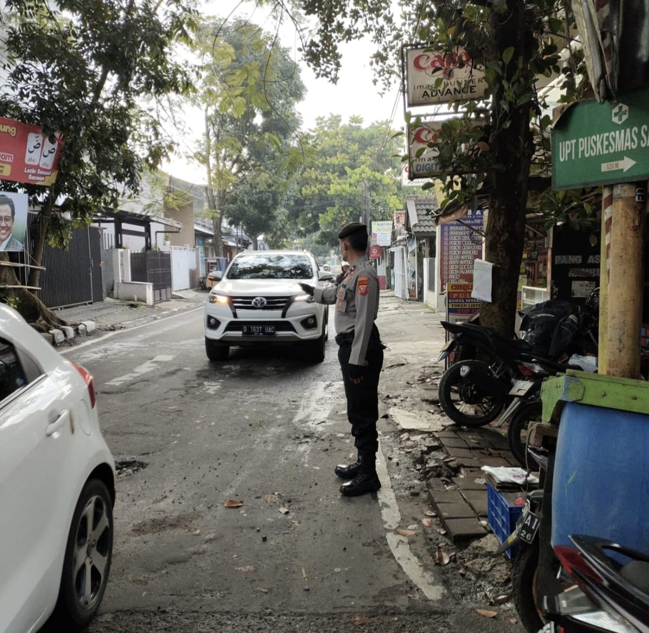 Polrestabes Bandung, Polda Jabar – Polsek Sukasari Guna mengantisipasi terjadinya kemacetan di pagi hari QR Polsek Sukasari Lakukan Giat Protap Yanmas Pagi Pengaturan Arus Lalulintas di Jl.Sariasih Kelurahan Sarijadi Kecamatan Sukasari Kota Bandung.(29/1/2025)