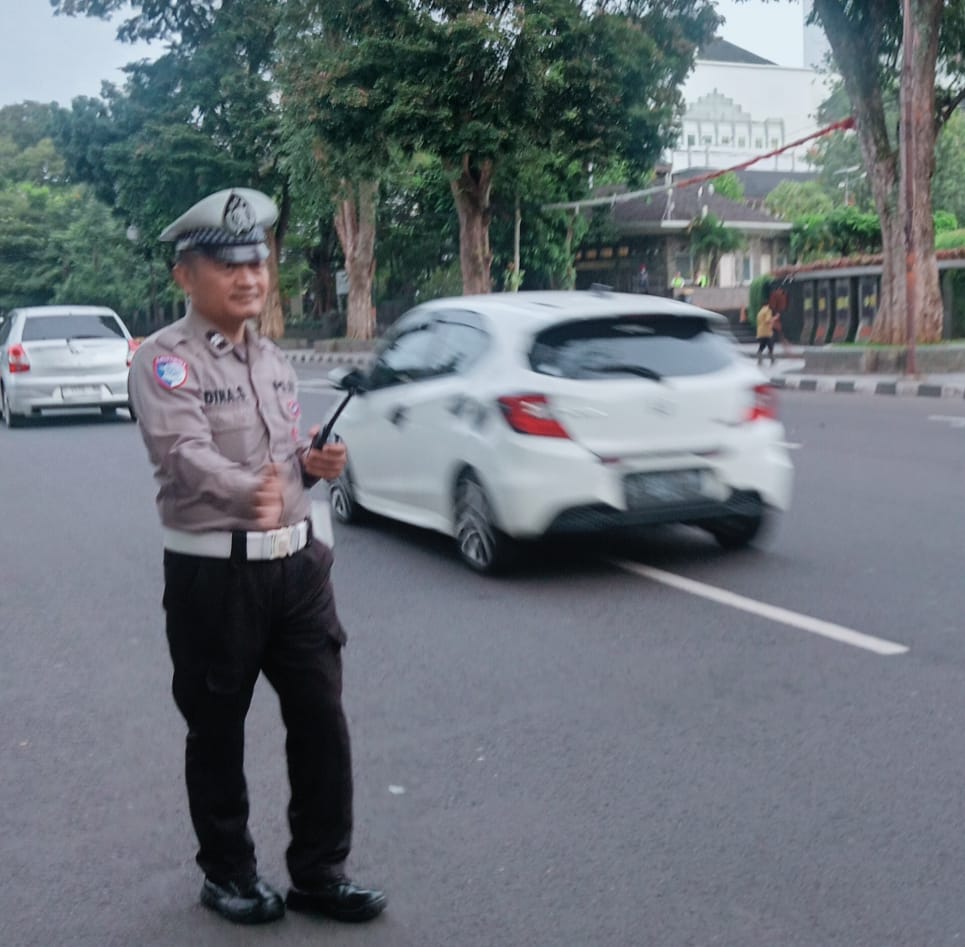 Antisipasi Kemacetan di pagi personil Unit Lalulintas Polsek Bandung Wetan Melaksanakan Pengamanan Jalur dipenogoro dan jalur Riau kota Bandung pada pagi hari Senin tanggal 24 Maret 2025