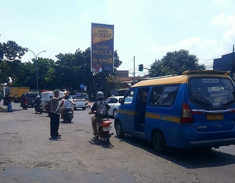 Antisipasi Kemacetan Pagi Hari Personil Unit Lalulintas Polsek Sukasari Melaksanakan Pengamanan Jalur