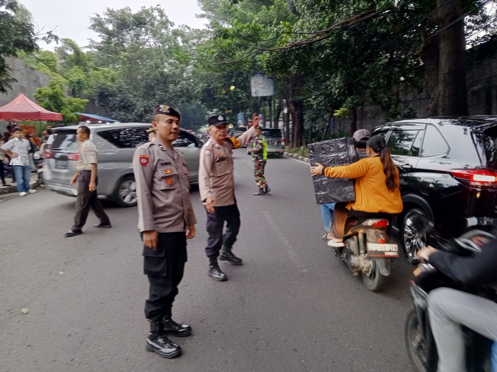 Polrestabes Bandung, Polda Jabar – Polsek Sukasari Guna mengantisipasi terjadinya kemacetan di sore hari QR Polsek Sukasari Lakukan Giat Protap Yanmas sore Pengaturan Arus Lalulintas di Jl.Perintis Kelurahan Sarijadi Kecamatan Sukasari Bandung.(19/4/2025)