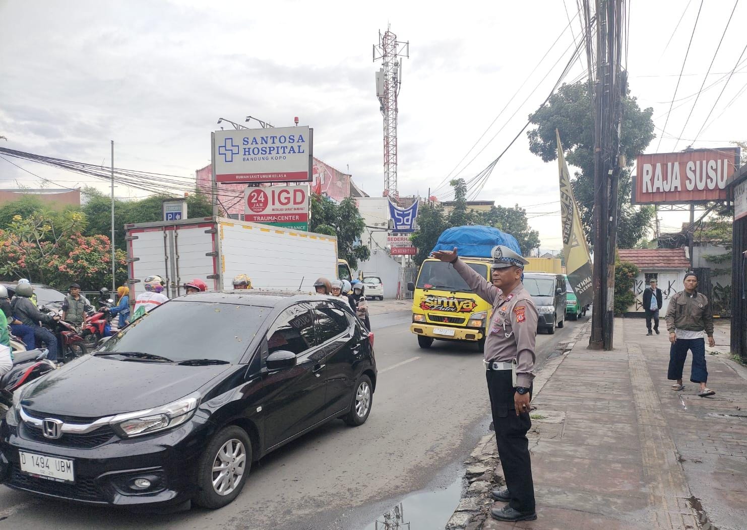 Personil ditempatkan di beberapa titik antisipasi kemacetan arus lalulintas sore hari di wilkum polsek babakan ciparay.