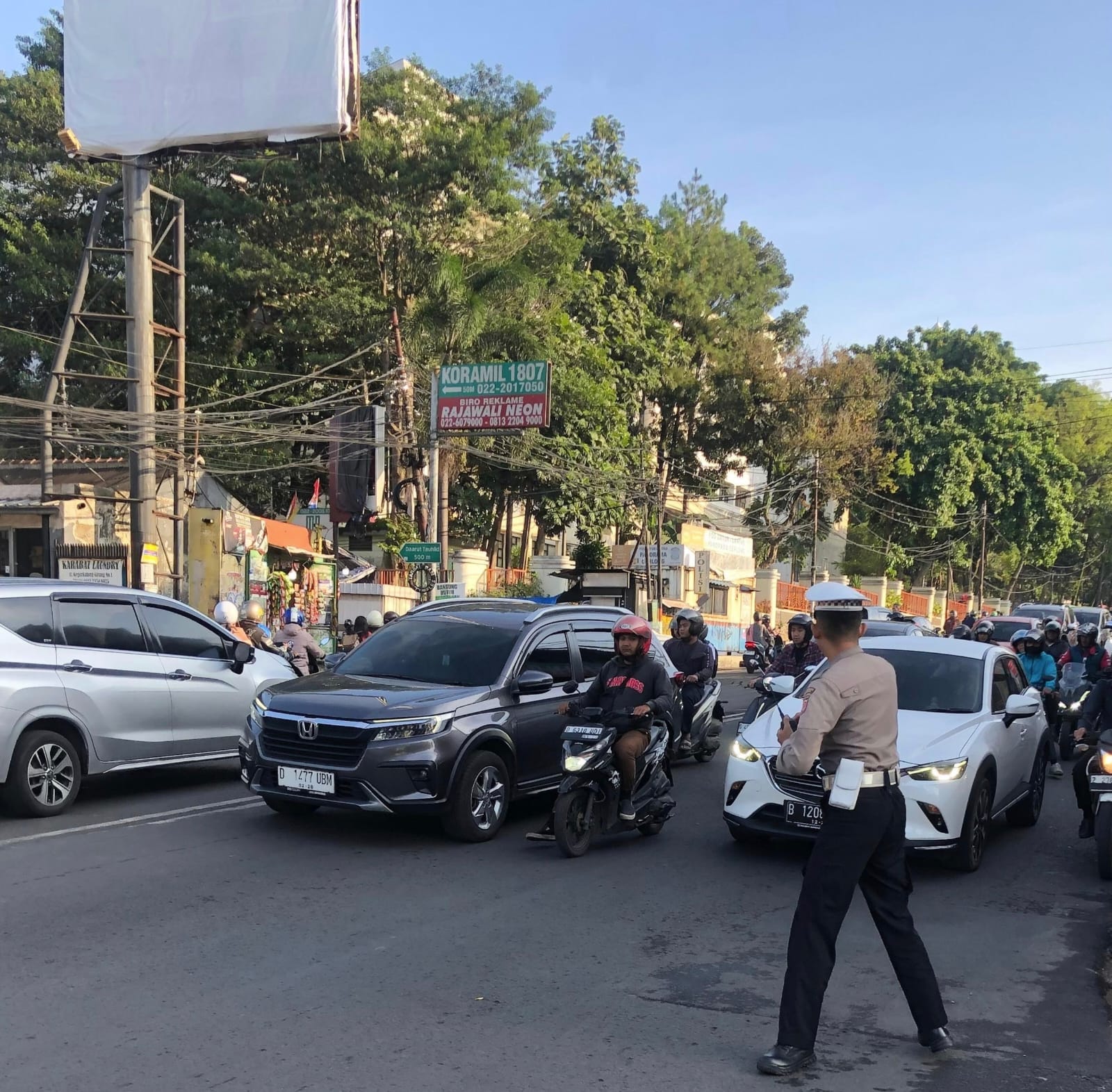 Polrestabes Bandung, Polda Jabar Polsek Sukasari Antisipasi kemacetan pagi hari, personil lalulintas Polsek Sukasari melaksanakan pengamanan jalur di titik rawan kemacetan Wilayah Hukum Polsek Sukasari Polrestabes Bandung.(2/5/2025)