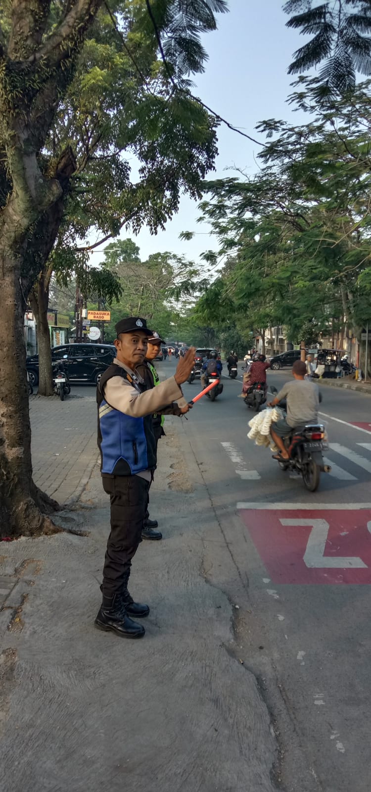 Personil Unit Binmas Polsek Arcamanik Lakukan Giat Pengaturan Arus Lalulintas pagi Hari
