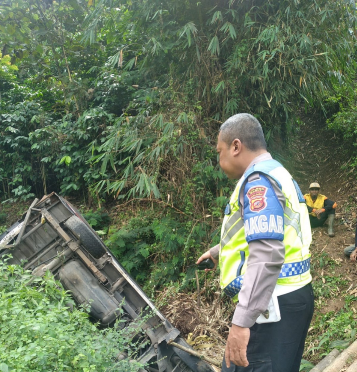 Kendaraan tersebut dikemudikan oleh Sdr. Dede (35), warga Desa Cisaat, Kecamatan Kadungora.
