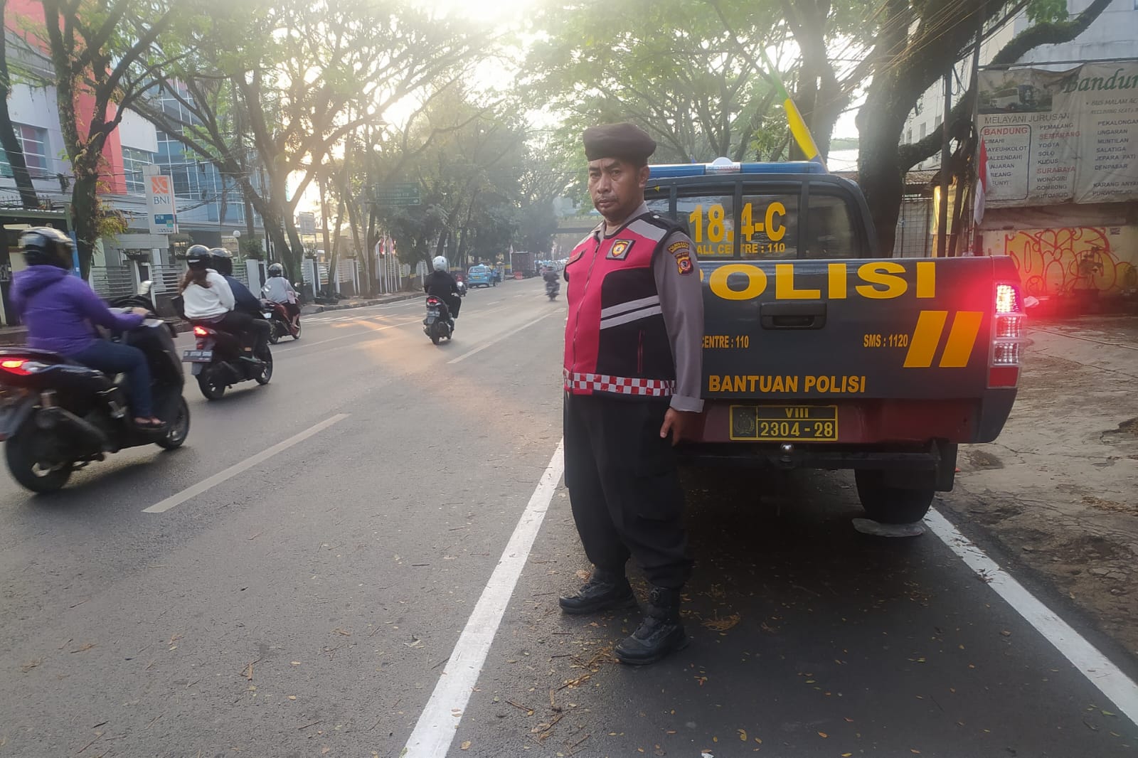 Polrestabes Bandung, Polda Jabar – Polsek Cicendo*. Personil Unit QR Patroli 18.4 C Polsek Cicendo Polrestabes Bandung melaksanakan pelayanan masyarakat berupa Pengawasan dan pengaturan arus lalu lintas di beberpa titik rawan seperti di sekitar Jl.Pajajaran Kota Bandung.