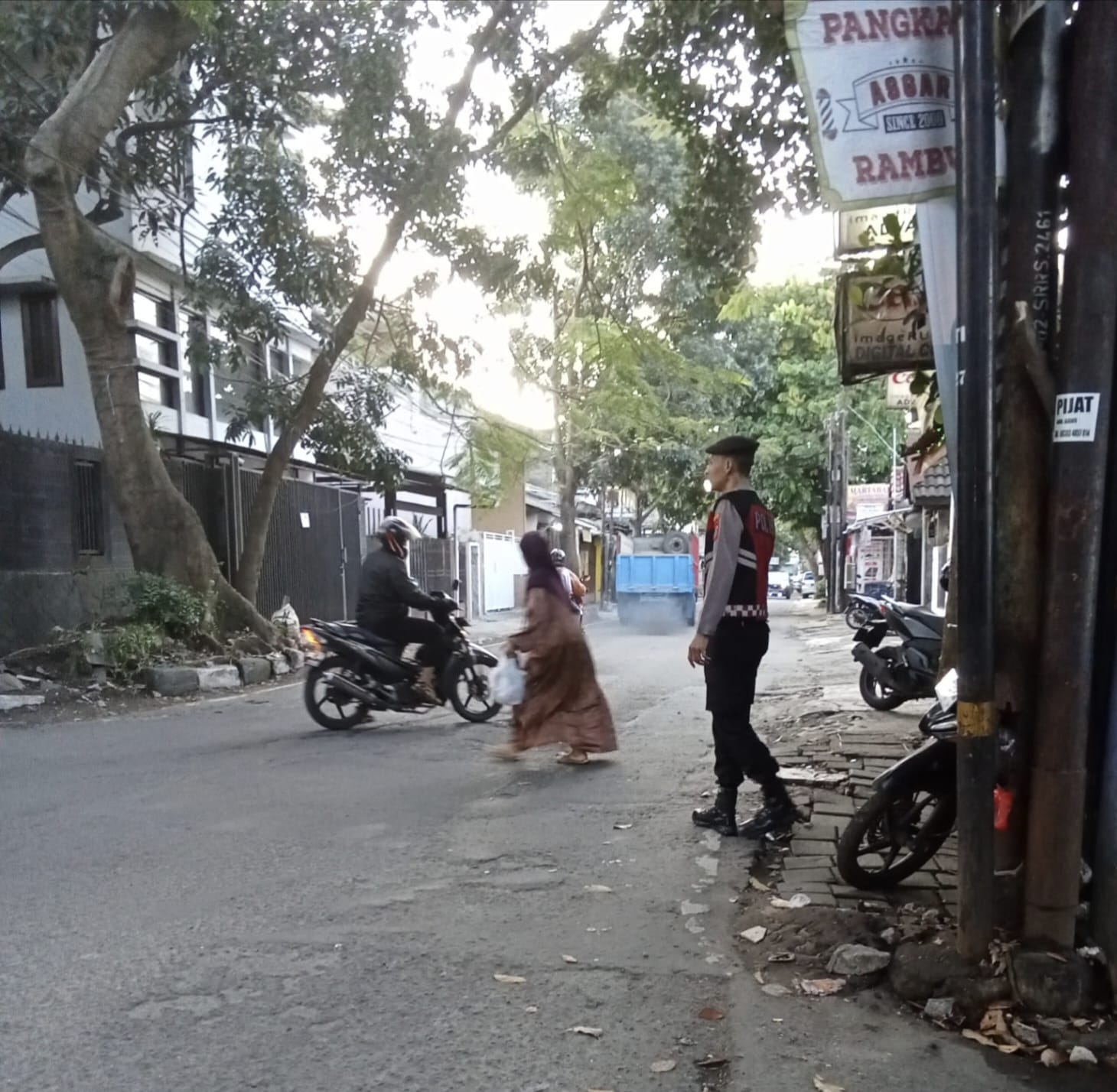 Personil QR Polsek Sukasari Melaksanakan Giat Protap Yanmas Pagi Pengaturan Arus Lalulintas