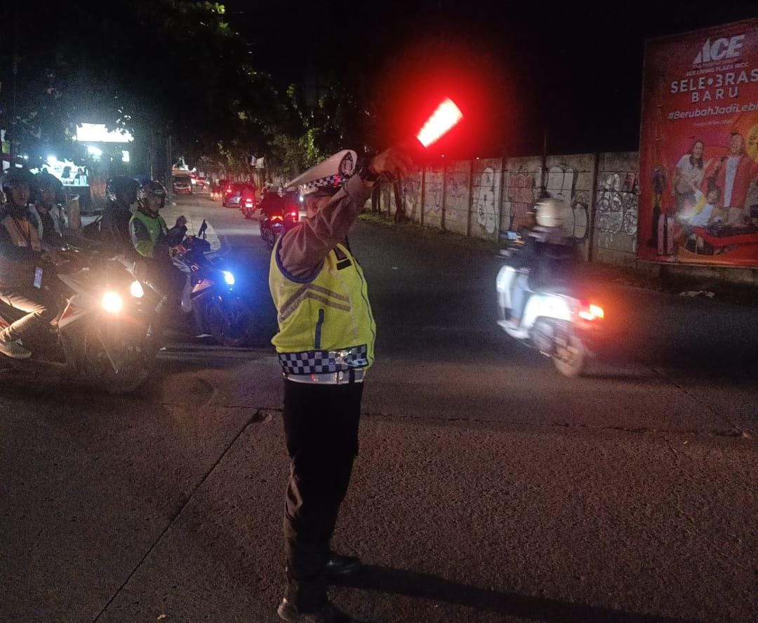 Unit Lantas Polsek Kiaracondong Polrestabes Bandung Laksanakan Pengawasan dan Pengaturan Lalulintas di Malam Hari