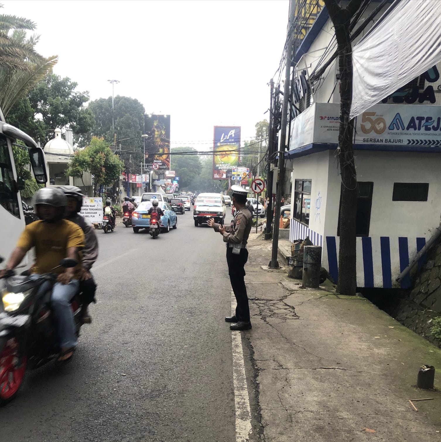 Antisipasi Kemacetan Pagi Hari Personil Unit Lalulintas Polsek Sukasari Melaksanakan Pengamanan Jalur