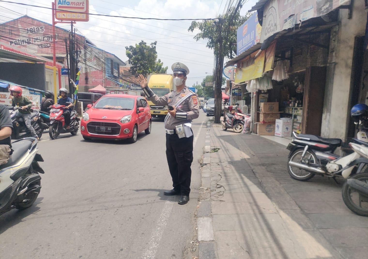 Polrestabes Bandung, Polda Jabar Polsek Babakan Ciparay Antisipasi kemacetan siang hari, Personil lalulintas Polsek Babakan Ciparay melaksanakan pengamanan jalur di titik rawan kemacetan Wilayah Hukum Polsek Babakan Ciparay Polrestabes Bandung.(29/9/2025)