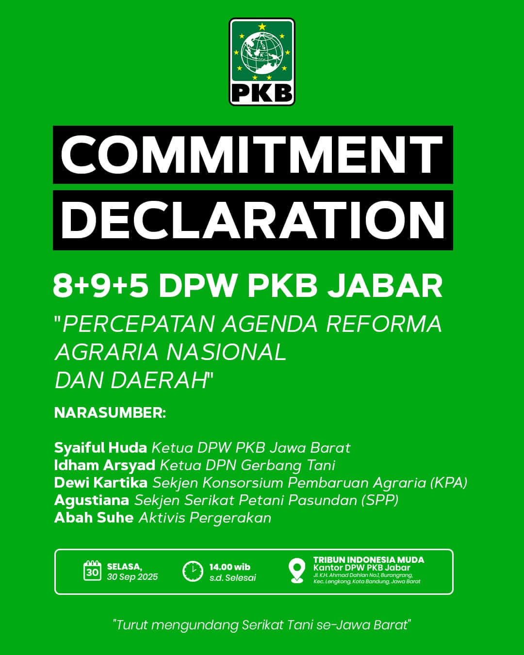 Dengan deklarasi ini, PKB bersama gerakan tani dan organisasi masyarakat sipil menegaskan bahwa reforma agraria bukan hanya agenda pusat, melainkan juga harus dijalankan secara nyata di tingkat daerah.