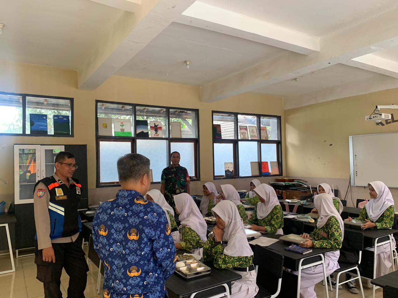 Polrestabes Bandung Polda Jabar Polsek Bojongloa Kidul Dalam upaya mendukung program pemerintah dalam pemenuhan gizi bagi pelajar, Bhabinkamtibmas Kelurahan Cibaduyut Kidul Aipda Cucu Sumirat bersama Babinsa Pelda Apip Dawas melaksanakan kegiatan monitoring pembagian Makanan Bergizi Gratis (MBG) kepada siswa/i SMPN 38 Bandung, yang berlokasi di Jln. Terusan Borobudur RT 03 RW 04, Kelurahan Cibaduyut Kidul, Kecamatan Bojongloa Kidul, Kota Bandung. Kamis, (02/10/2025)