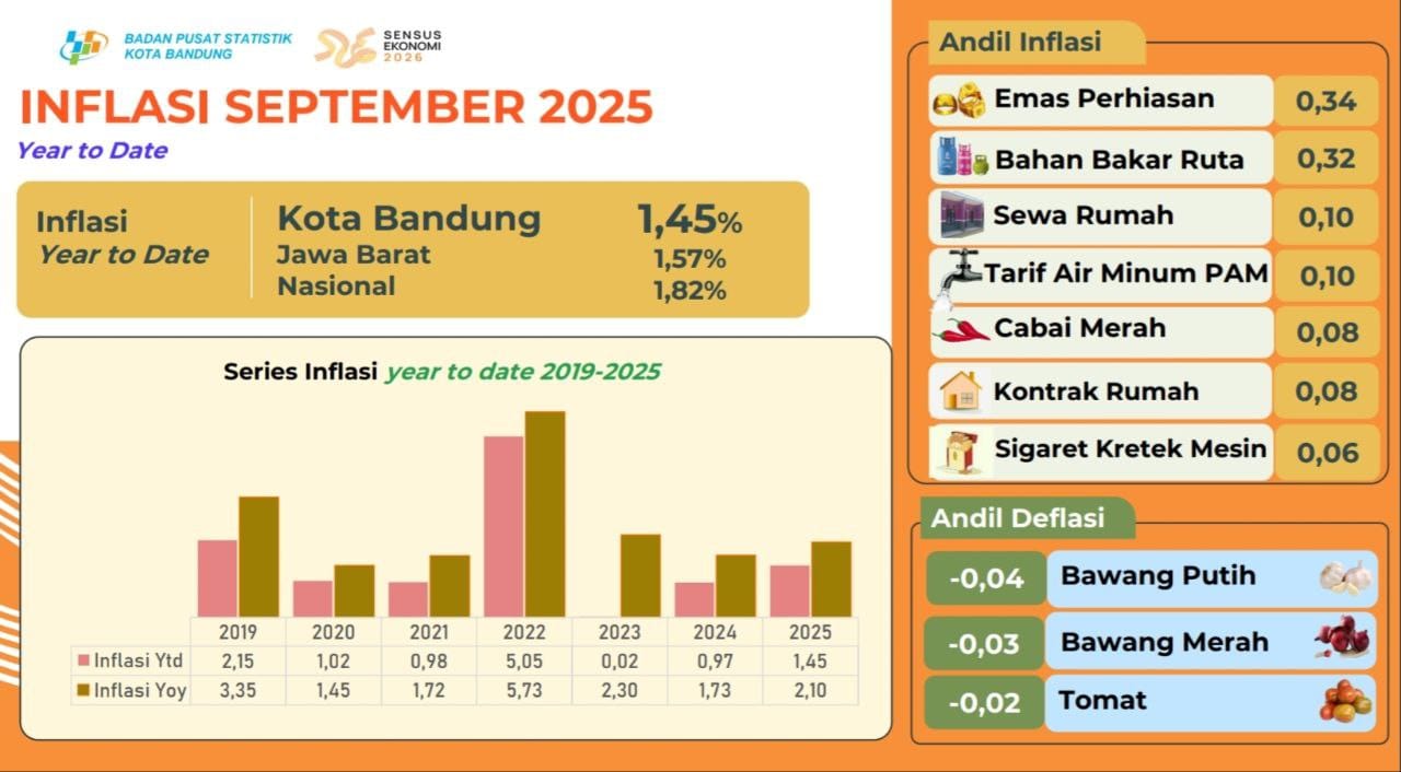 Inflasi Kota Bandung September 2025 Terkendali, Lebih Rendah dari Jabar dan Nasional