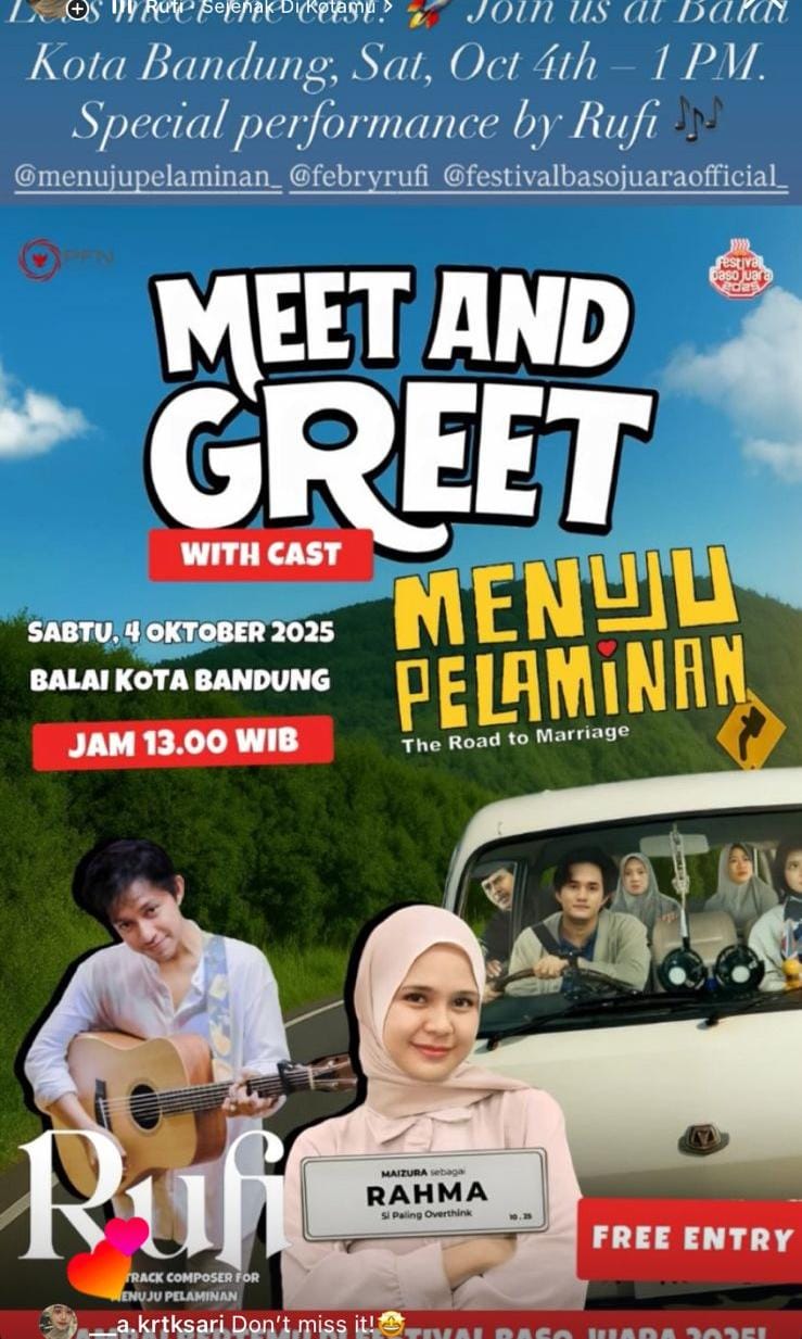 Yang lebih istimewa, acara Meet and Greet ini akan dimeriahkan oleh penampilan spesial dari Rufy, musisi muda berbakat yang juga mengisi soundtrack dari film ini. Penampilan Rufy dijamin akan membuat suasana semakin meriah dan berkesan.