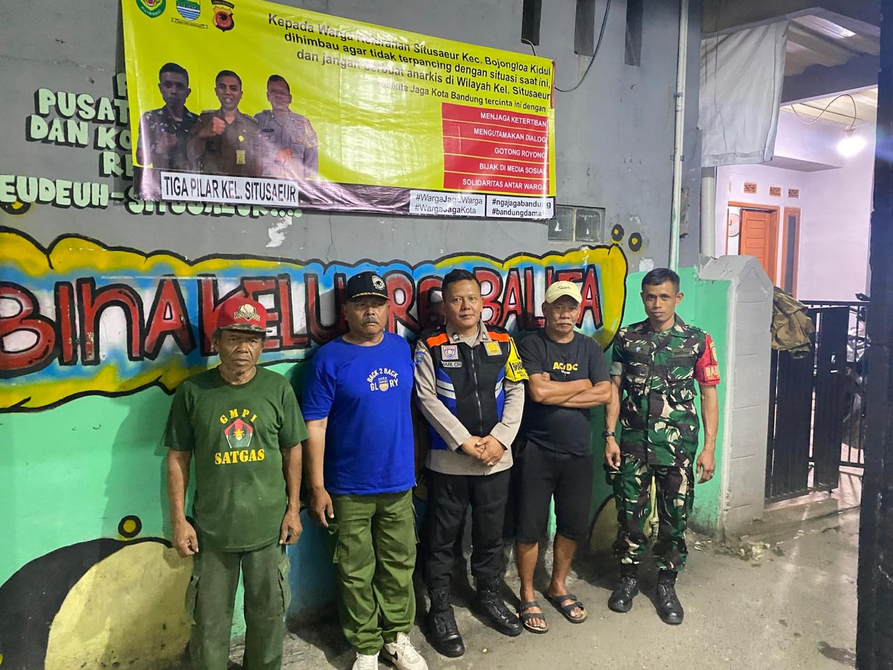 Polrestabes Bandung, Polda Jabar Polsek Bojongloa kidul* Dalam rangka meningkatkan kehadiran Polri di tengah masyarakat serta memperkuat sistem keamanan lingkungan, Bhabinkamtibmas Kelurahan Situsaeur, Aiptu Hari Cristian, melaksanakan kegiatan patroli dialogis dan pemantauan pos Satkamling/Ronda Siaga bersama warga dan anggota Linmas RW 07, Kelurahan Situsaeur, Kecamatan Bojongloa Kidul, Kota Bandung.
