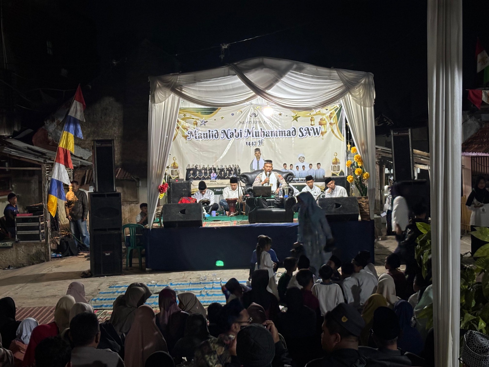 Lensanusantara.my.id | Garut – Dalam rangka memperingati Maulid Nabi Muhammad SAW, Sat Binmas Polres Garut menggelar kegiatan NGAPOL (Ngaji bari Ngadongeng Bareng Polisi) di Masjid Jami Ar Rameli Kampaung Rancabatu Desa Wanamekar Kecamatan Wanaraja, Kabupaten Garut, Sabtu malam (4/10/2025).