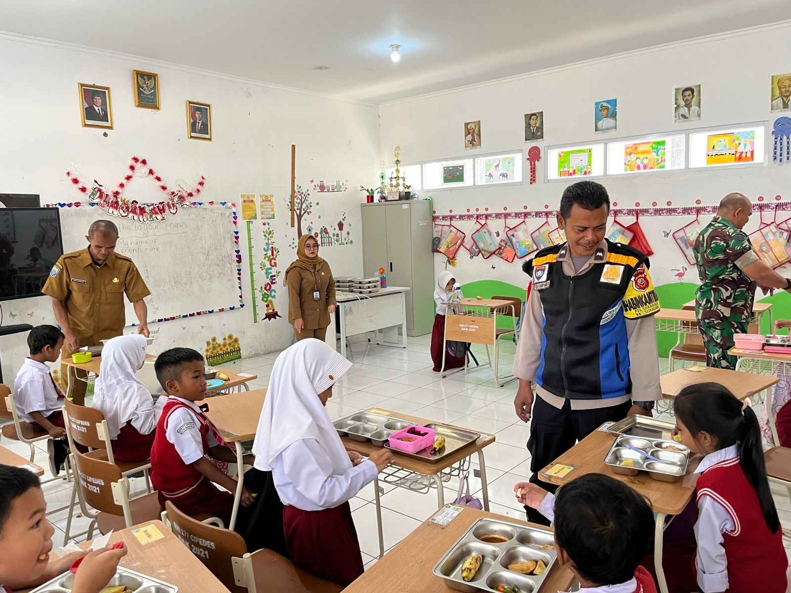 Polrestabes Bandung, Polda Jabar – Polsek Sukasari Bhabinkamtibmas Kelurahan Sukarasa Polsek Sukasari Monitoring Pelaksanaan pendistribusian makan bergizi gratis program Presiden Republik Indonesia diperuntukan bagi Siswa SDN 177 Jl.Cipedes Tengah Rt.06 Rw.02 Kelurahan Sukarasa Kecamatan Sukasari Kota Bandung. (6/10/2025)