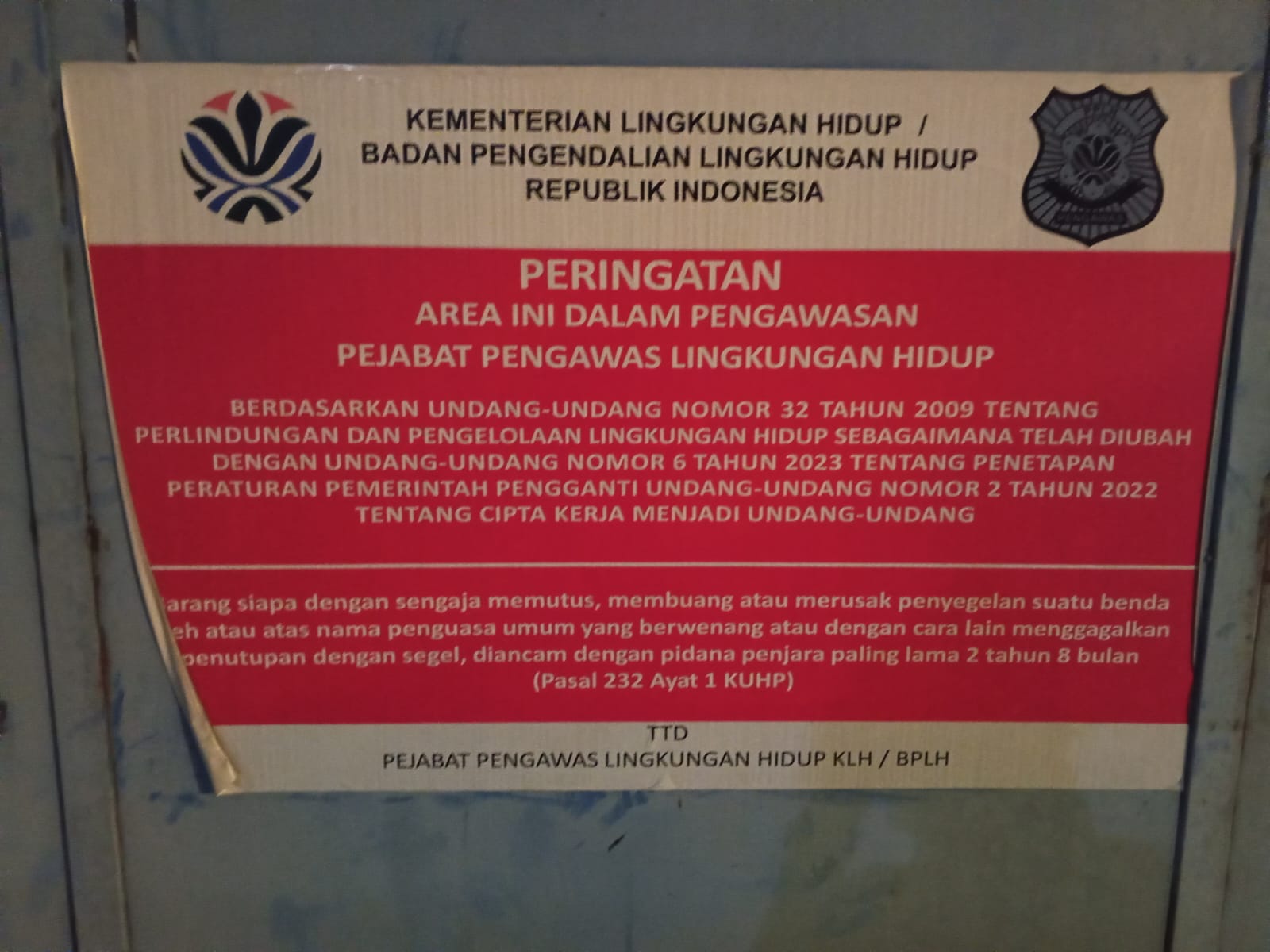 Jika benar adanya pelanggaran terhadap segel atau status pengawasan yang telah ditetapkan oleh Kementerian Lingkungan Hidup, maka tindakan tersebut dapat dikategorikan sebagai bentuk pengabaian terhadap aturan hukum yang berlaku, serta berpotensi menimbulkan dampak serius terhadap lingkungan dan masyarakat sekitar.