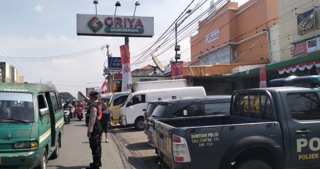 Polrestabes Bandung- Polda Jabar Polsek Ujungberung Antisipasi kemacetan Sore Hari personil Samapta Polsek Ujungberung melaksanakan pengamanan dan pengaturan di tempat tempat rawan kemacetan seperti Di Jl. A.H. Nasution-Jln Kaum depan Pasar Ujungberung.*(16-10-2025)*