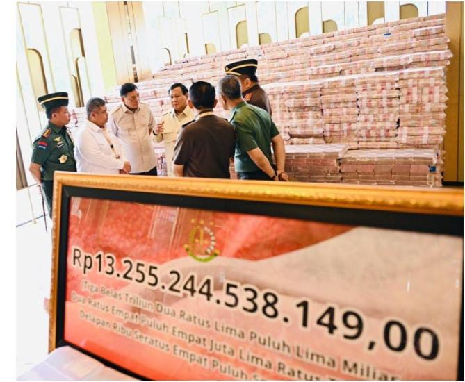 Lebih lanjut, Presiden menilai bahwa penyerahan uang pengganti kerugian negara sebesar Rp13,25 triliun ini menjadi pertanda baik sekaligus momentum refleksi dalam satu tahun masa pemerintahannya. Ia mengajak seluruh komponen bangsa untuk bersatu dalam menjaga serta mengelola kekayaan nasional dengan penuh tanggung jawab.