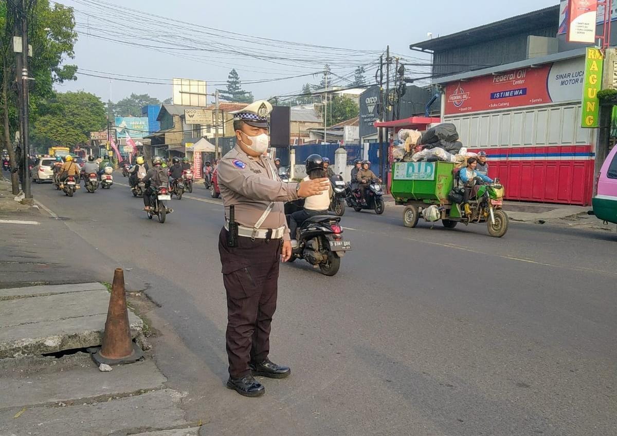 Selain melakukan pengaturan, petugas juga memberikan imbauan kepada para pengendara agar selalu tertib berlalu lintas, menggunakan helm, serta mematuhi rambu-rambu lalu lintas guna mencegah terjadinya kecelakaan.