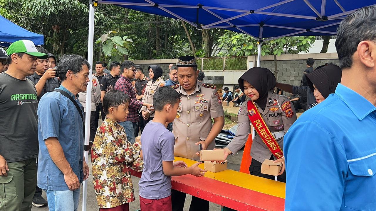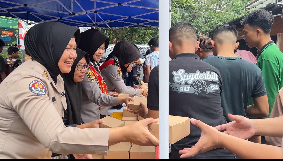 Kegiatan ini turut melibatkan pengurus masjid, anggota Polrestabes Bandung, Ketua RW, serta ibu-ibu Asrama Polisi Jalan Nias. Pembagian dilakukan secara humanis oleh Mojang Lodaya Polrestabes Bandung, menambah semarak dan keakraban suasana kegiatan tersebut.