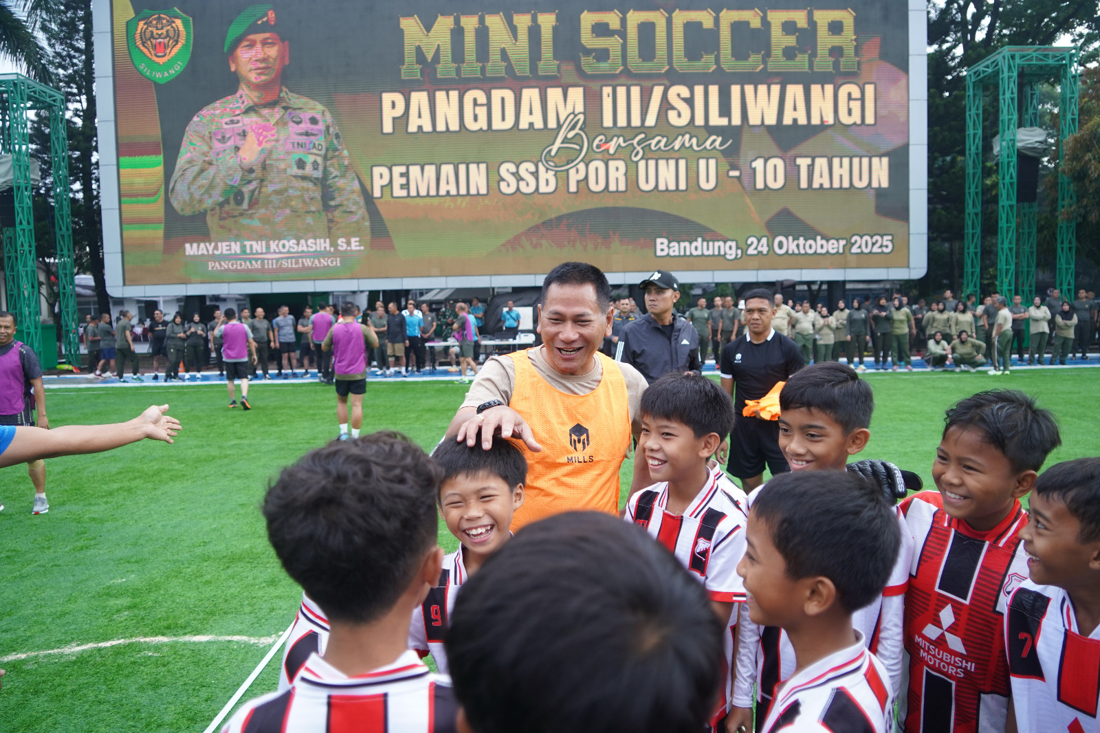 Lensanusantara.my.id-Bandung, – Kodam III/Siliwangi menggelar pertandingan mini soccer persahabatan antara Pangdam III/Siliwangi Mayjen TNI Kosasih, S.E., bersama jajaran pejabat Kodam III/Siliwangi melawan tim SSB POR UNI U-10, di Lapangan Prajurit Kodam III/Siliwangi, Jalan Aceh No. 69, Kota Bandung, Jumat (24/10/2025).