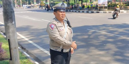 Antisipasi Kemacetan di siang hari personil Unit Lalulintas Polsek Bandung Wetan Melaksanakan Pengamanan Jalur di Jl.Dipenogoro kota Bandung antisipasi yanmas siang hari pada Tanggal 09 Oktober 2025