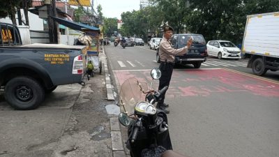 Antisipasi Kemacetan siang Personil Samapta Polsek Ujungberung Melaksanakan Pengaturan Arus Lalin
