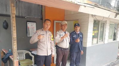 Jaga Kondusifitas Wilayah Bhabinkamtibmas memberikan Himbauan Kamtibmas kepada Satpam.