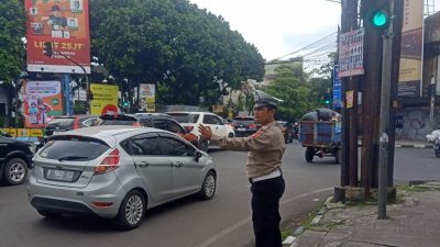 Personel Unit Lantas Polsek Andir Lakukan Pengaturan dan Pemantauan Arus Lalulintas di Beberapa Titik Rawan Macet Siang Hari