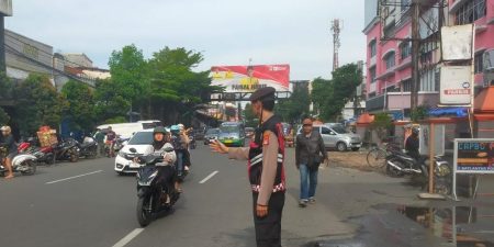Personil Samapta Polsek Regol Lakukan Giat Pengaturan Arus Lalulintas Sore hari.