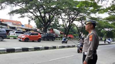 Personil Unit lantas dan Unit Samapta Polsek Cinambo melaksanakan kegiatan rutin pelayanan masyarakat berupa pengaturan lalulintas Siang hari