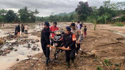 Tim SAR Sat Brimob Polda Jabar Evakuasi dan Lakukan Penanggulangan Banjir Bandang di wilayah Sagaranten Kabupaten Sukabumi