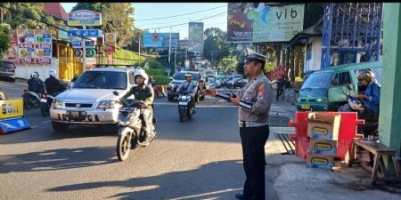 Unit Lalu Lintas Polsek Cidadap Lakukan Pengaturan Arus Lalu Lintas Pagi Hari