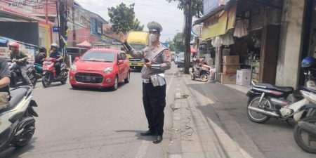 Unit Lalulintas Polsek Babakan Ciparay Lakukan Giat Pengaturan Arus Lalulintas Siang Hari