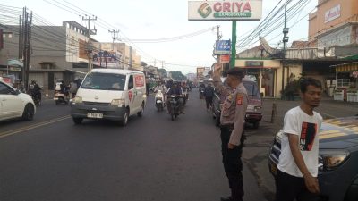Unit Samapta Polsek Ujungberung Gelar Pengaturan Lalu lintas, Bentuk Pelayanan Kepada Masyarakat sore hari